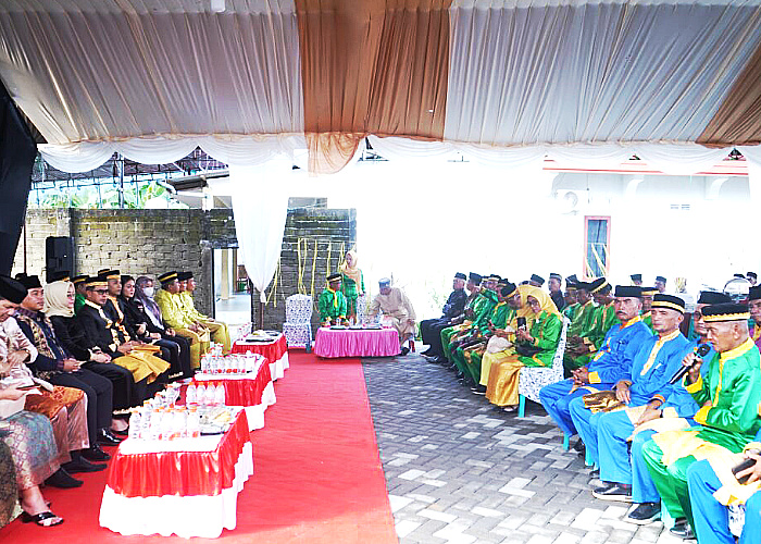 Di hadapan Bupati dan Wakil Bupati, perwakilan pelaksana adat menyampaikan secara resmi waktu pelaksanaan hari raya sebagaimana tradisi leluhur.