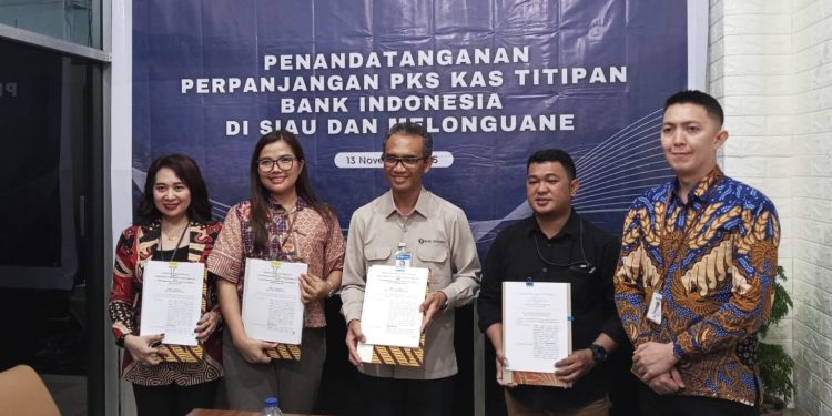 TALAUD–Bank Indonesia (BI) Sulawesi Utara kembali menjalin sinergi dengan Bank Sulut Gorontalo (BSG) Cabang Siau dan Cabang Melonguane melalui pengelolaan kas titipan.