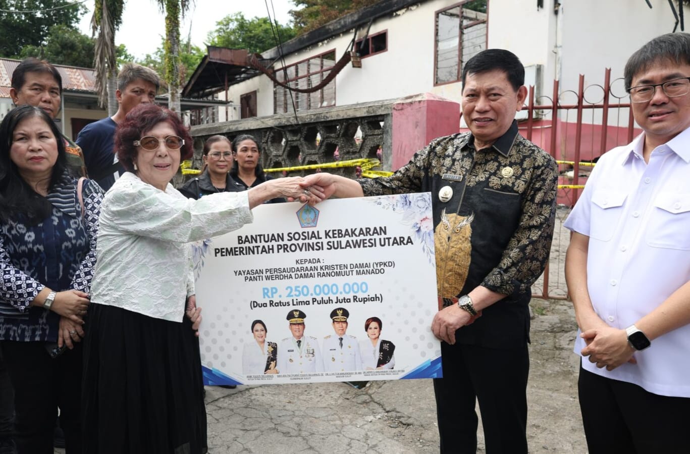 Namun, tak hanya berbelasungkawa, sebagai Pemerintah, Gubernur Sulut juga turut menyerahkan bantuan uang tunai senilai 250 juta rupiah kepada pihak panti werda tersebut.