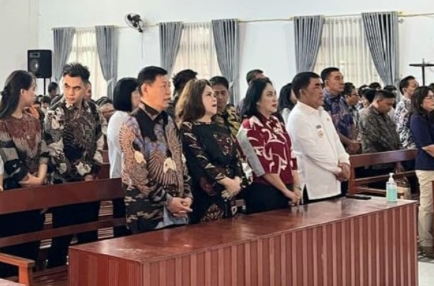 Suasana ibadah berlangsung penuh syukur, diwarnai kebersamaan antara pemimpin daerah dan masyarakat.
