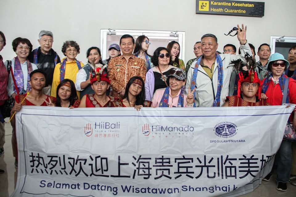 Penjemputan turis Shanghai ini, merupakan perdana pasca dibukanya rute penerbangan langsung dari Shanghai ke Manado, yang dilayani maskapai TransNusa.