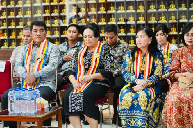 MANADO–Gubernur Sulawesi Utara Mayjen TNI (Purn) Yulius Selvanus SE melakukan peresmian Purna Pugar Vihara Dhammadipa Manado, Minggu (8/06/2025).
