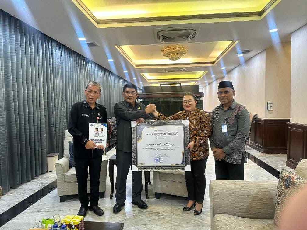 Piagam penghargaan kemudian diserahkan kepada Gubernur Sulawesi Utara, Yulius Selvanus Komaling, di Wisma Negara Bumi Beringin, Manado pada Selasa (24/2/2026).