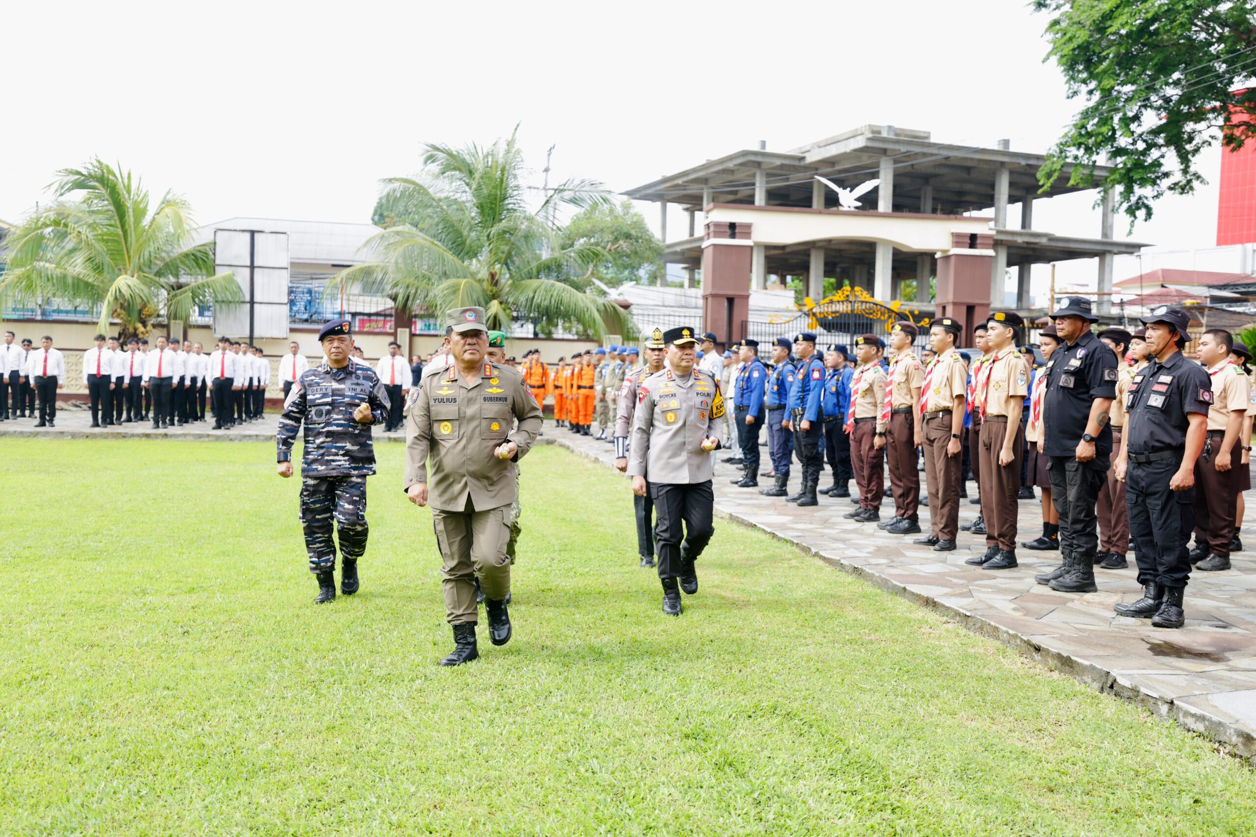 Dalam kesempatan itu, Gubernur bersama Kapolda dan Pangdam melakukan pemeriksaan pasukan yang telah berbaris sebagai bagian dari kesiapan pengamanan menjelang hari raya.