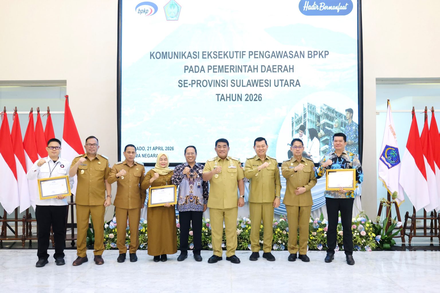 Dalam forum tersebut, Kepala Perwakilan BPKP Heru Setiawan, menyerahkan apresiasi kepada Perumda Air Minum Duasudara Bitung, PDAM Wanua Wenang Manado dan RSUD Kotamobagu atas capaian dan kinerja pengelolaan.