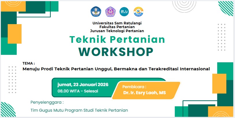 “Momentum workshop ini  titik baru bagi program studi Teknik Pertanian Fakultas Pertanian UNSRAT pernah meraih predikat program studi S1 terakreditasi Unggul oleh Badan Akreditasi Nasuonal Perguruan Tinggi ( BAN PT) pada periode 2018-2024.