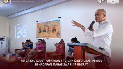 MANADO–Ketua KPU Sulut Meidy Tinangon, memberikan kuliah umum tentang Efektivitas Digitalisasi Pemilu 2024 dihadapan…