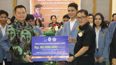 MANADO–Rektor Unsrat Prof Berty Sompie berkesempatan menyerahkan secara simbolis Beasiswa CPFI kepada 20 mahasiswa berprestasi…